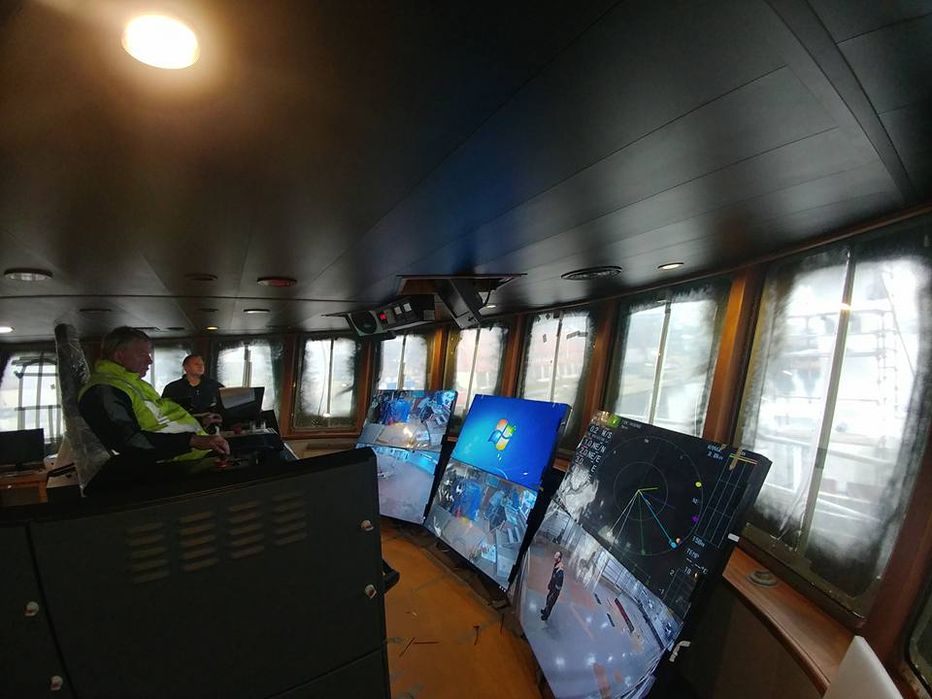 Brúin með skjám sem eru settir á festingar sem voru sérsmíðaðar fyrir þá og hægt er að hækka upp skjánna og lækka