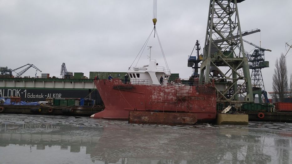 Í Gdansk í Póllandi var þessi litli skrokkur tekinn og heldur betur hrist upp í honum. Allt var tekið innan úr skrokknum og brúin var rifin af og síðan var hafist handa við að smíða,
